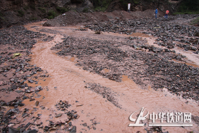 7月29日晚,一场特大暴雨杂着冰雹突袭了中铁一局四公司坎布拉项目驻地和施工工地,坎布拉景区内山洪顺山势倾泻而下,大量石块顺山洪冲进运输便道,多处便道被阻断、冲毁或被洪水淹没,生活、生产的蓄水池严重污染、多处防护边坡被冲垮。材料运输、混凝土浇筑等工序均因受灾被迫停滞,严重影响了坎布拉项目的施工和生活。