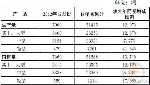 据宇通客车1月5日发布的产销快报,2012年其全年销量51,688辆,产量51,435辆。