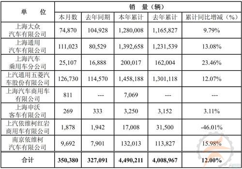 1月5日,上汽集团发布产销快报称,2012年12月销量约为35万辆,同比增长7%;全年销量创449万辆新高,同比增长12%。
