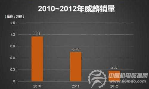 多品牌发展战略正式实施之后,似乎并没有达到奇瑞高层最初的预期,从2010年-2012年威麟和瑞麒的销量来看,三年中两大子品牌销量情况呈直线下滑,市场表现每况愈下。据数据中心数据显示,威麟从2010到2012年的年销量分别为1.15万台、0.75万台和0.27万台。