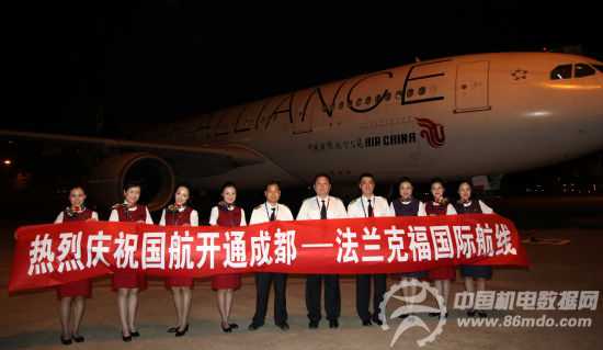 5月19日凌晨1点33分,随着一架国航空客A330-200远程宽体飞机搭载219名乘客从成都双流国际机场腾空飞往德国,标志着中国国际航空公司正式开通成都—法兰克福国际航线。这是中国民航开辟的第一条从西部地区直飞欧洲的航线,也是国航建设成都航空枢纽的又一重大举措。