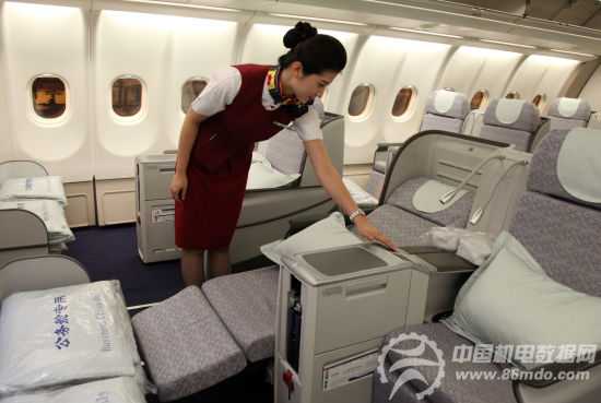 国航西南分公司成都—法兰克福首航乘务员测试180度平躺座椅设备状态