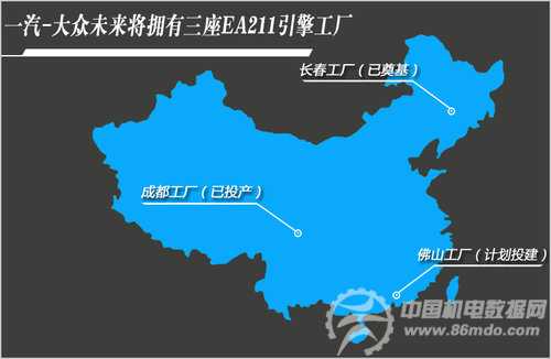 根据一汽-大众关于未来EA211系列发动机的产能规划,除已投入生产的成都工厂及开始建设的长春工厂外,其还将在佛山建设第三座发动机工厂,从而满足市场需求。对此张丕杰也向网通社表示:“未来三座发动机工厂的投产将满足一汽-大众长春、成都和佛山三大生产基地的发动机需求、构筑更为优化的供应链。”