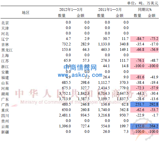 2012年5月中国无纺布(无纺织物)分省市产量数据表