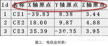 在对话框中选择工件与电极,(电极数可选取所有的电极) 执行确定,中望3D将根据工程师们选取的电极数生成对应的电极工程图,如电极坐标图(图三):