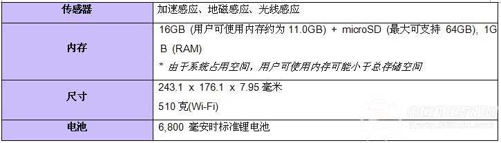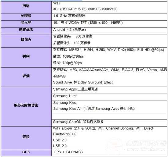三星GALAXY Tab 3 10.1英寸平板电脑产品参数: