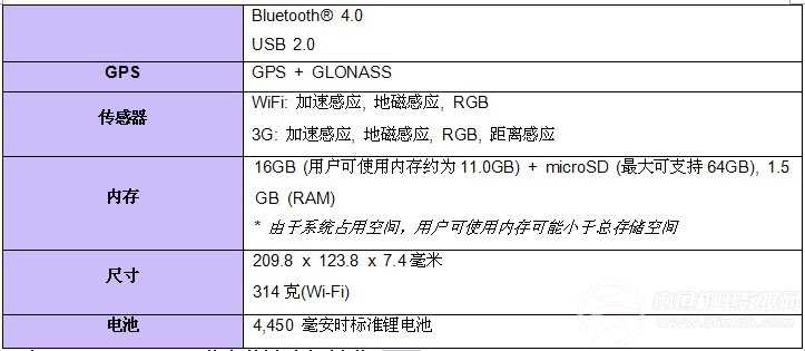 三星GALAXY Tab 3 8英寸产品参数: