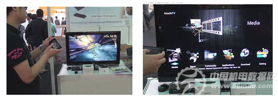 此款产品体验效果优异,其处理器搭载了盈方微Cortex-A9family双核芯片,最高主频可达1.2GHz,此款芯片可输出全高清HDMI 1080P画面,拥有wifi无线网络和安卓4.1系统,支持外接最大为32GB容量的SD卡,同时也支持所有主流高码流的高清视频文件格式。同时,关于产品方面的使用也非常方便,消费者只需藉由HDMI连接到电视,输入端的电视即可轻松晋身为多功能智能型连网电视,使用者再通过智能手机、平板电脑等 Android或iOS平台下载专属APP应用程序后,即可远程遥控操作电视,轻松享受各种娱乐。下面,就让我们来更多地了解这款产品的精华之处: