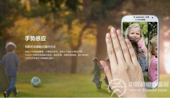 几乎所有的触屏操作都有一个大前提:一只干净的手随时待命。但是当我们进食、洗涤或是忙于其他工作时,要操作手机往往是一个大麻烦。GALAXY S4的 “手势感应”(Air Gesture)由此应运而生的一项创新的非接触式操作方式。开启手势感应功能的三星GALAXY S4,可以让用户在手不接触手机的情况下进行相册浏览、切换歌曲,甚至是接打电话,这就好像在和手机中的朋友打招呼一样简单、自如。