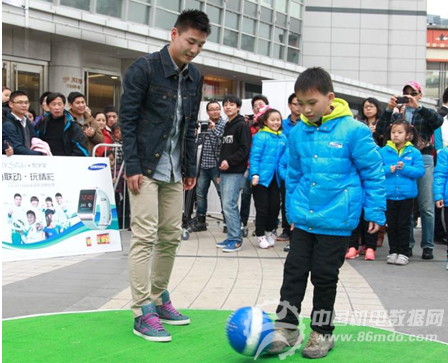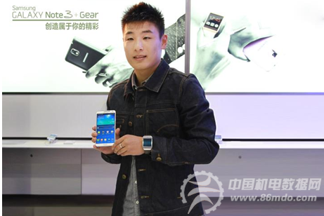 活动现场武磊体验三星GALAXY Note 3+Gear