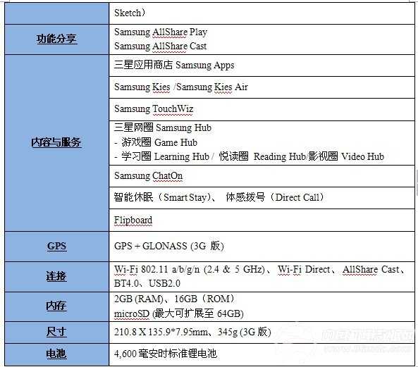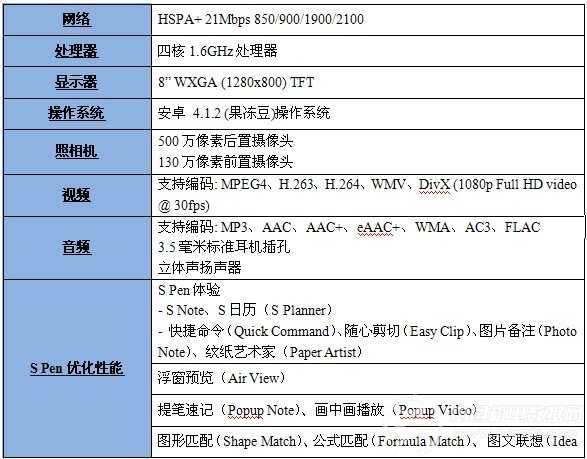 GALAXY Note 8.0 规格参数: