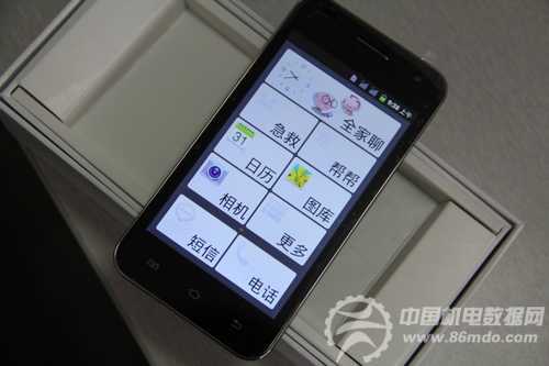 打开手机,锁屏是一个具有按键报时以及农历功能的界面,字体非常大,声音也很响亮。的确是符合老人使用。解开锁屏,进入一个定制过的九格界面,界面清晰,上层的全家聊和底层的短信和电话功能是锁死的,无论在任何状况下中老年用户都可以直接找到这些最常用的手机功能,相对于繁复的安卓系统,的确还原了手机本身该有的功能,这也正是中老年用户最需要的。