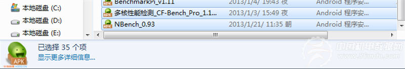 我们一共安装了35个APK,大小随机分布,其中包括有大型游戏和一些较小的测试软件。