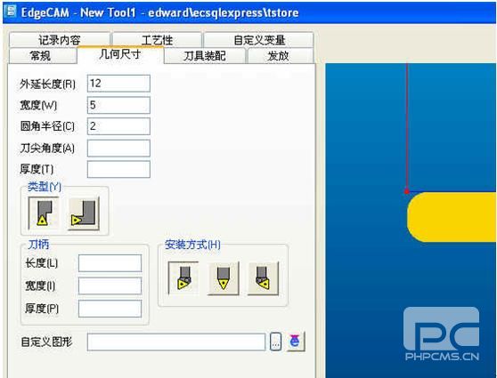 2、 打开自定义刀具图形窗口之后,可以看到刀具的二维图形,这里注意区分刀片和刀杆