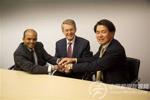 图中为本次签署合作协议的三方代表,从左到右为:福特全球产品研发副总裁拉兹·奈尔(Raj Nair)、戴姆勒负责奔驰研发的管理委员会董事托马斯·韦伯(Thomas Weber)和日产研发执行副总裁山下光彦(Mitsuhiko Yamashita)。