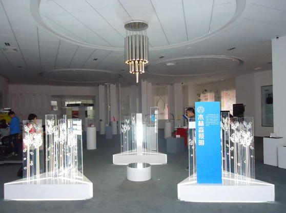 在照明演绎方面,木林森强调物体与光线的关系问题,在虚与实之间,光是虚的,物体是实的,但是没有光、物体是看不见的,也没有色彩,所以我们借透明亚克力材质的穿透性和雕刻的树木来演绎虚与实的关系。